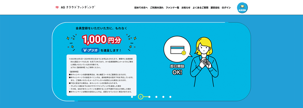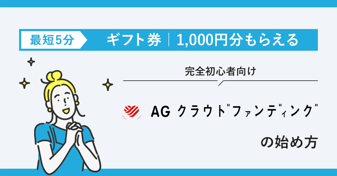 AGクラウドファンディングについて詳しく知るとこで、安心して投資家登録&1,000円分のギフト券がGETできます。