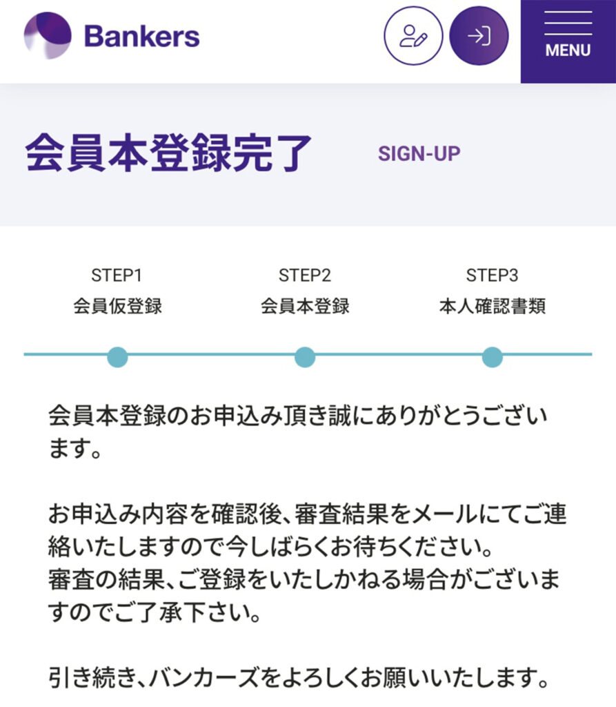 Bankers(バンカーズ)の新規会員登録は、最短5分で登録できます。