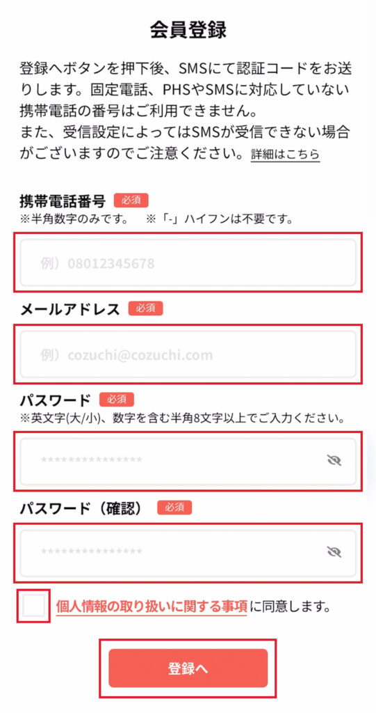 COZUCHI(コヅチ)の新規会員登録は、最短5分で登録できます。