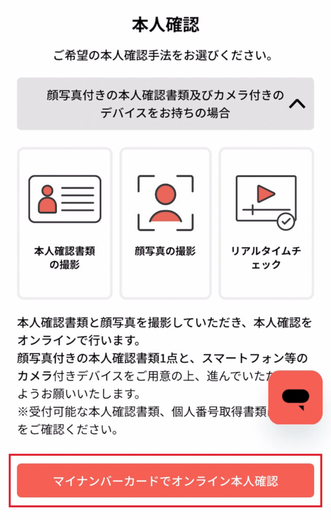 →「オンライン本人確認」をタップ - 顔写真つきの本人確認書類を持ってない人