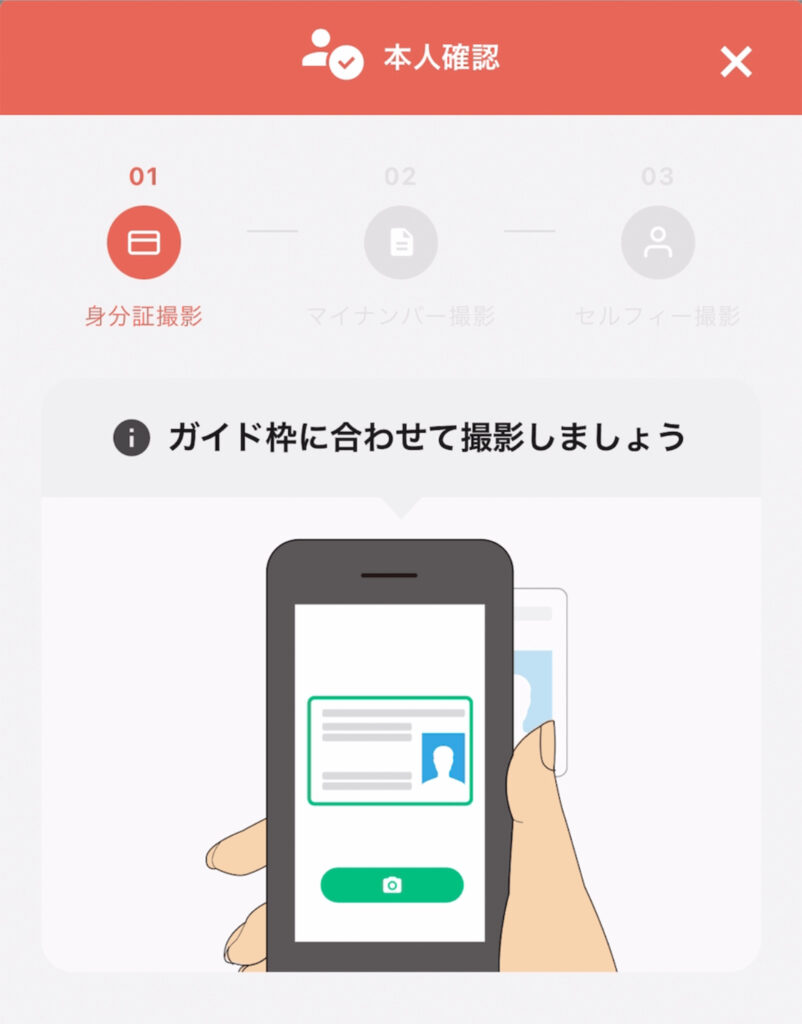 入力が完了したら、本人確認へ進みましょう。