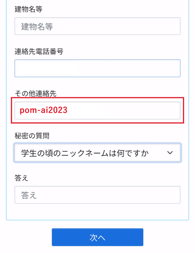 「その他連絡先」の欄に、下記紹介コードを必ず入力してください。