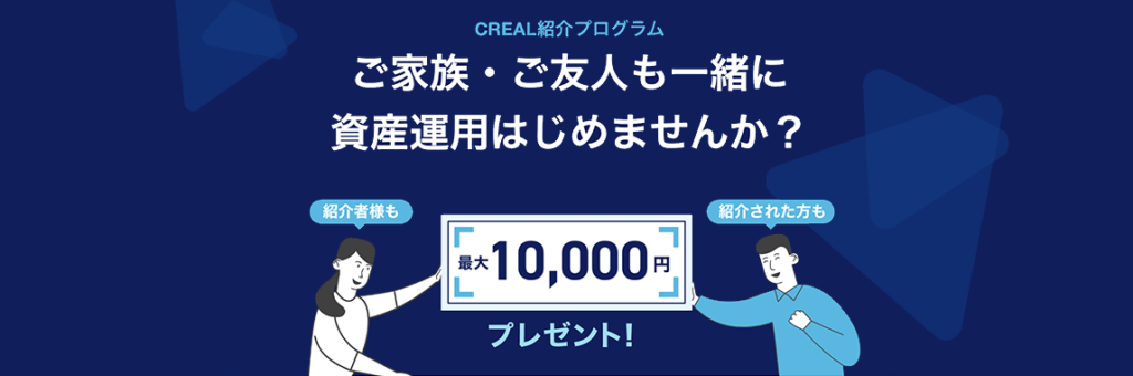 CREAL(クリアル)は最短5分ほどの投資家登録と友達紹介でお金を受け取れます。