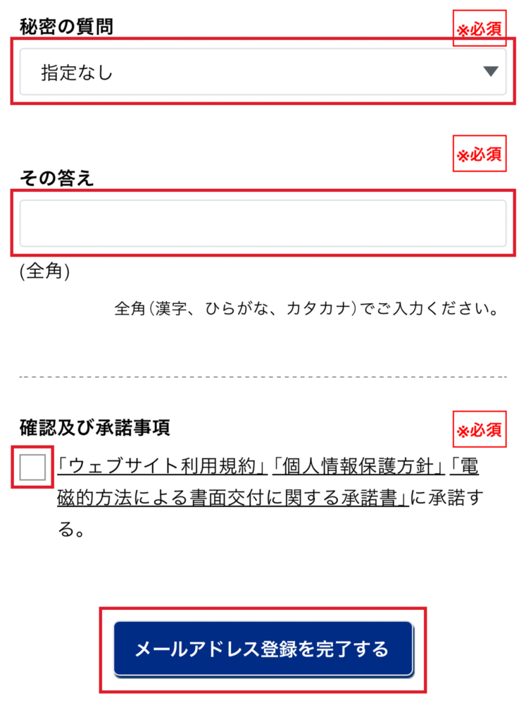 承諾事項を3つ開きチェックし、完了ボタンをクリックする。
