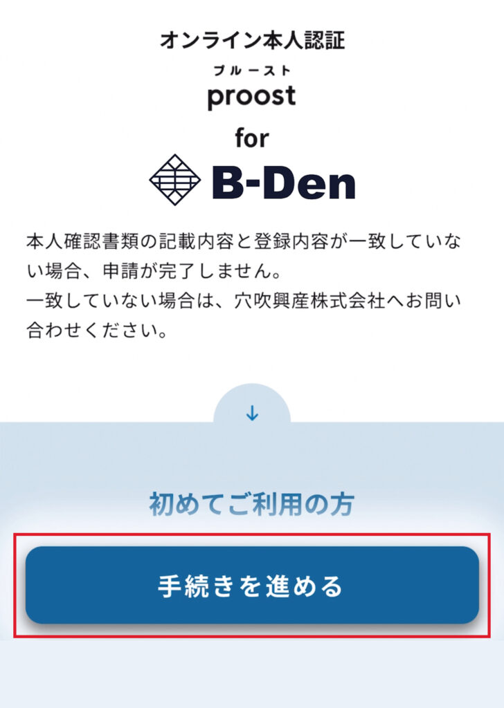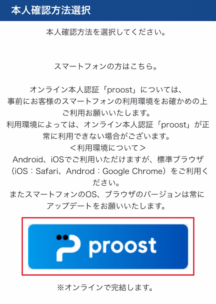 ①【Proost】の案内にそって、本人確認を進めていきましょう!(早くてオススメです)
