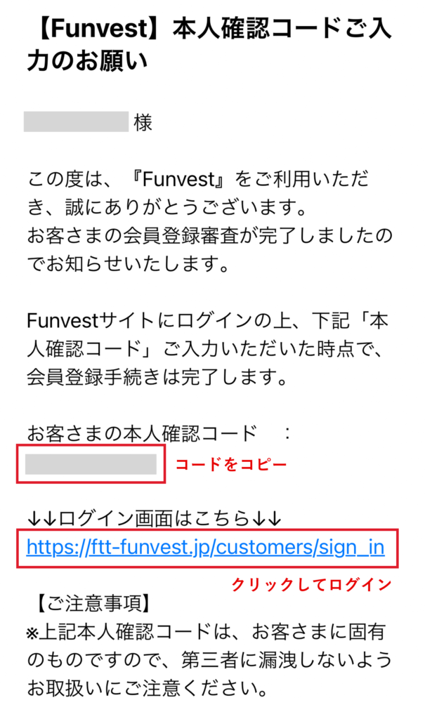 本人確認コードをコピーして、URLをタップしてログインしていきます。