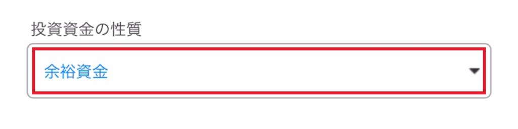 「投資資金の性質」の欄は、必ず「余裕資金」にチェックしましょう◎