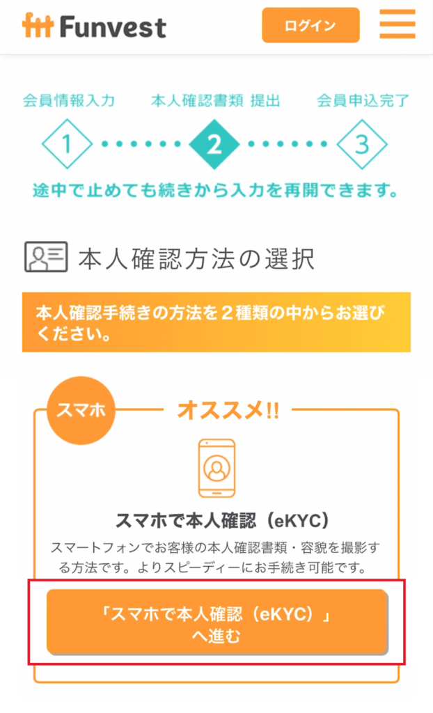 ①【eKYC】の案内にそって、本人確認を進めていきましょう!(早くてオススメです)