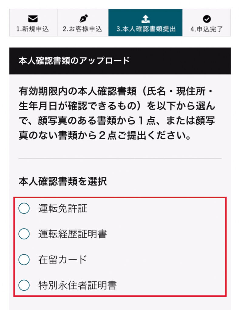 ①【本人確認書類のアップロード】の案内にそって、本人確認を進めていきましょう!