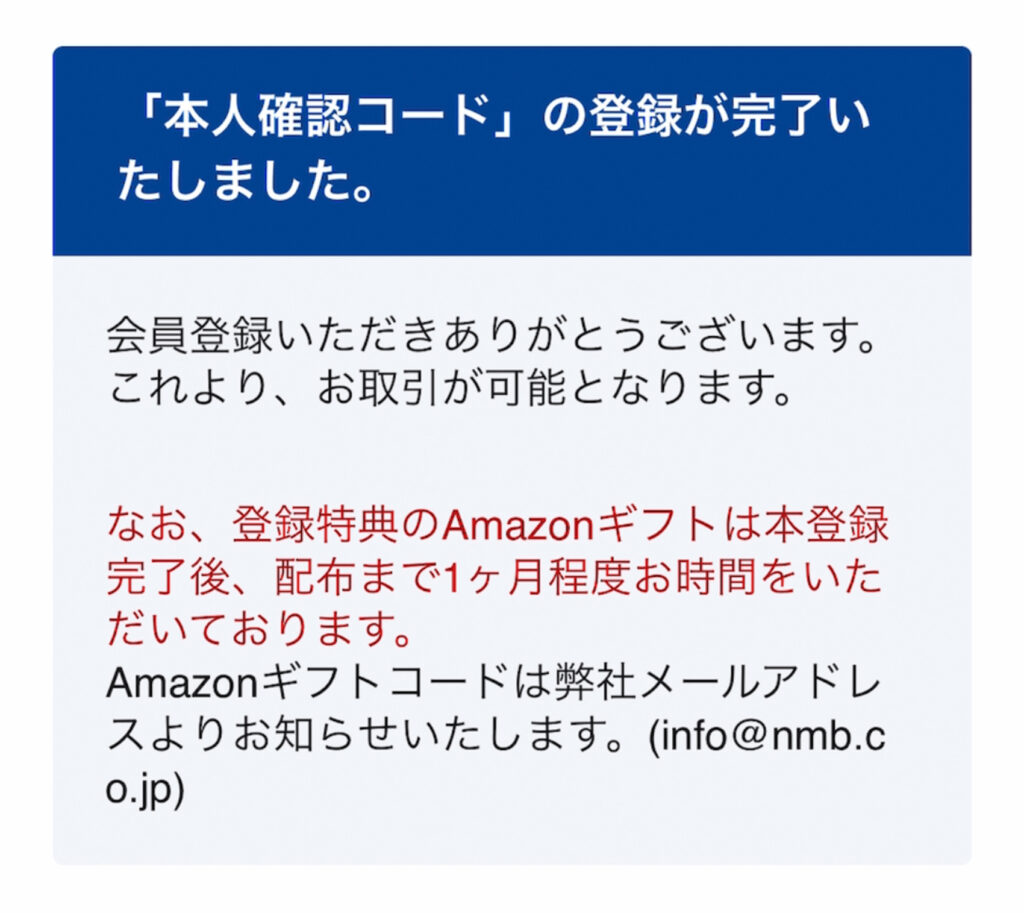 本人確認が終わったら、残りは【本人確認コード】の入力のみです◎