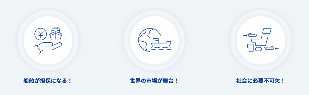 - 船という実物資産のため、抵当権を設定し共倒れリスクを回避