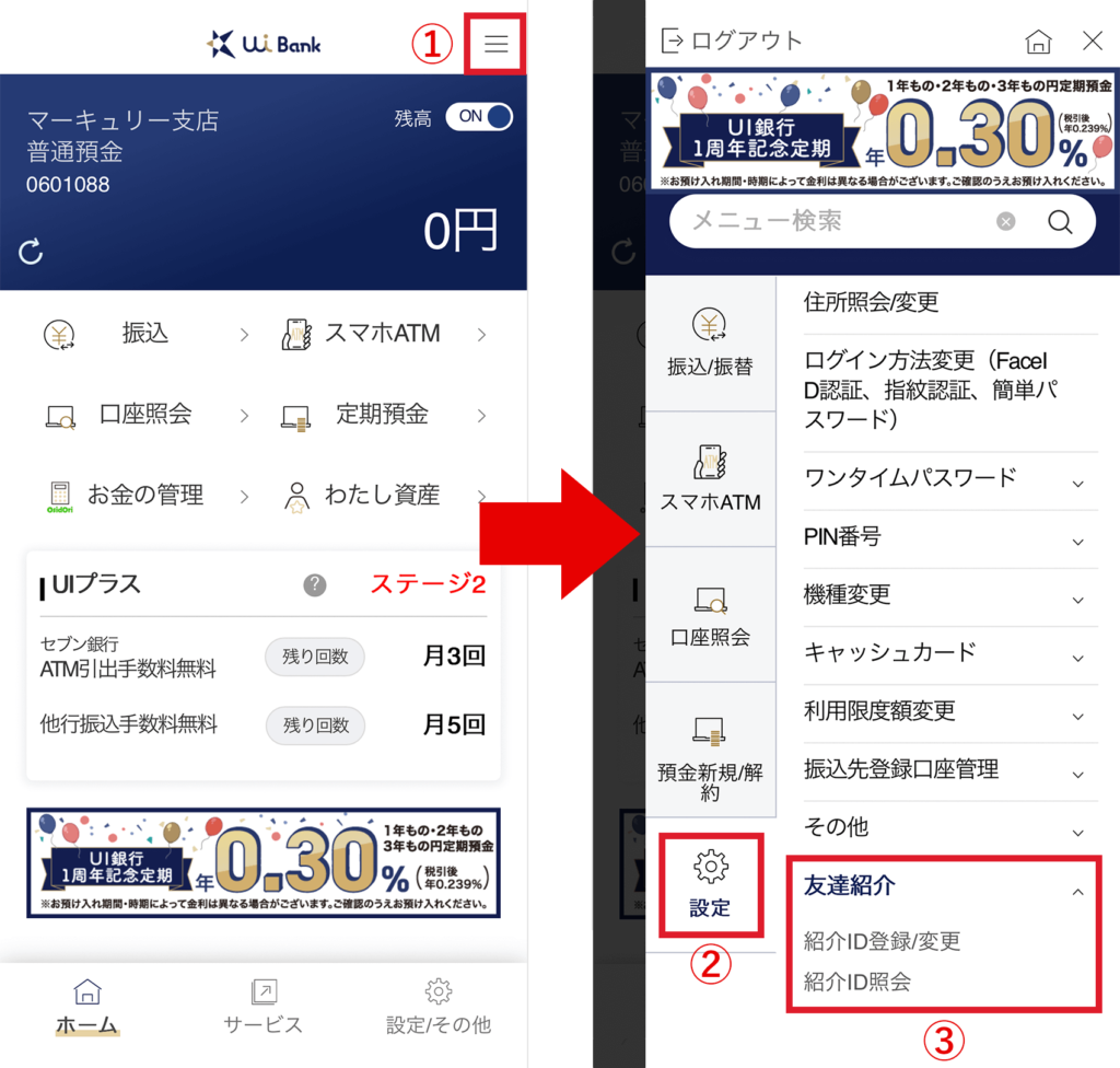 UI銀行の紹介IDはどこ?と探している方は、下記の2パターンかと思います。